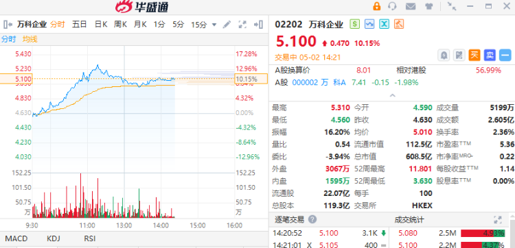 截至发稿,中国海外宏洋集团(00081.HK)涨超11%,万科企业(02202.HK)涨超10%,越秀地产(00123.HK)、龙湖集团(00960.HK)双双涨近8%,绿城中国(03900.HK)、世茂集团(00813.HK)等个股也纷纷跟涨。