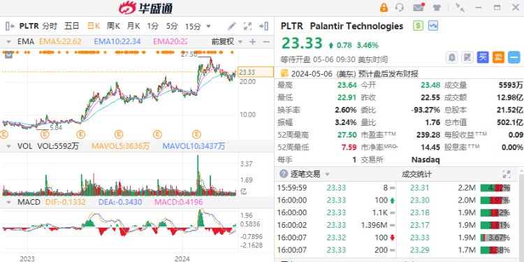 Palantir股价上周五上涨3.46%,至23.33美元;自2024年初以来,已经上涨了31%以上。