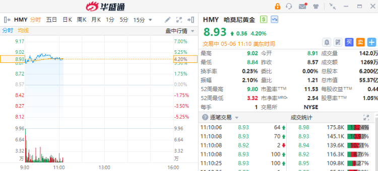 美股异动 | 黄金板块集体上涨,哈莫尼黄金涨超4%