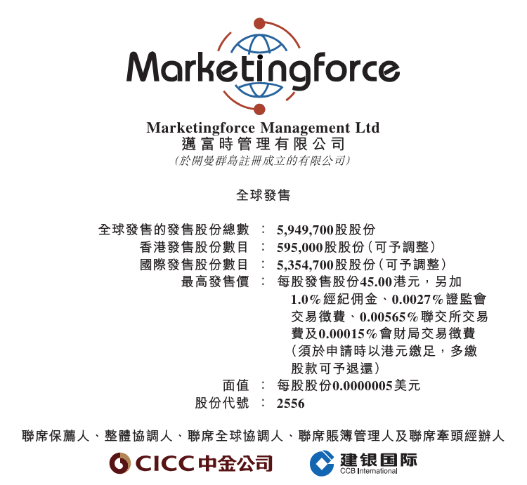 据招股书资料,迈富时管理是中国一家营销及销售SaaS解决方案提供商。公司通过Marketingforce平台提供营销及销售SaaS解决方案,为各种规模具有不同需求的企业提供服务,从内容与体验、广告与促销、社交与关系、销售与愉悦、数据与分析到策略与管理。公司的精准营销服务亦向广告客户提供一站式跨媒体在线营销解决方案,帮助企业在头部媒体平台上精准有效地触达目标受众。
