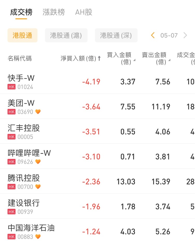 其中,南向资金净买入中国银行5.93亿港元,加仓理想汽车-W、小米集团-W,金额分别为3.61亿港元、1.79亿港元;净卖出快手-W4.19亿港元。