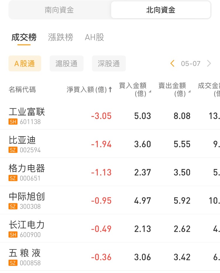 北向资金今日净卖出21.4亿元。工业富联、比亚迪、格力电器分别遭净卖出3.05亿元、1.94亿元、1.13亿元;贵州茅台逆势获净买入10.79亿元。