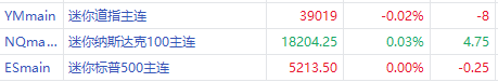 华盛资讯5月8日消息,三大期指盘前小幅震荡,截至发稿,纳指期货 $NQmain 涨0.03%,标普500指数期货 $ESmain 接近平走,道指期货 $YMmain 跌0.02%。