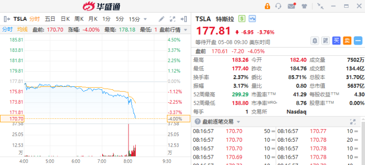 特斯拉盘前跌超4%,市场消息:美国检察官正在对其展开调查
