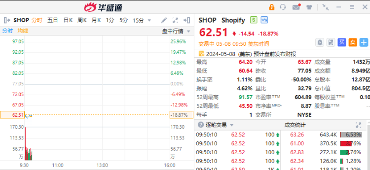 Shopify重挫超18%,一季度同比由盈转亏。