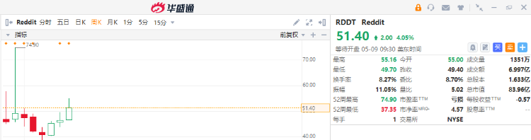 2、Reddit周涨超10%,业绩大超预期,广告收入增速39%打败同行;花旗上调其目标价至65美元