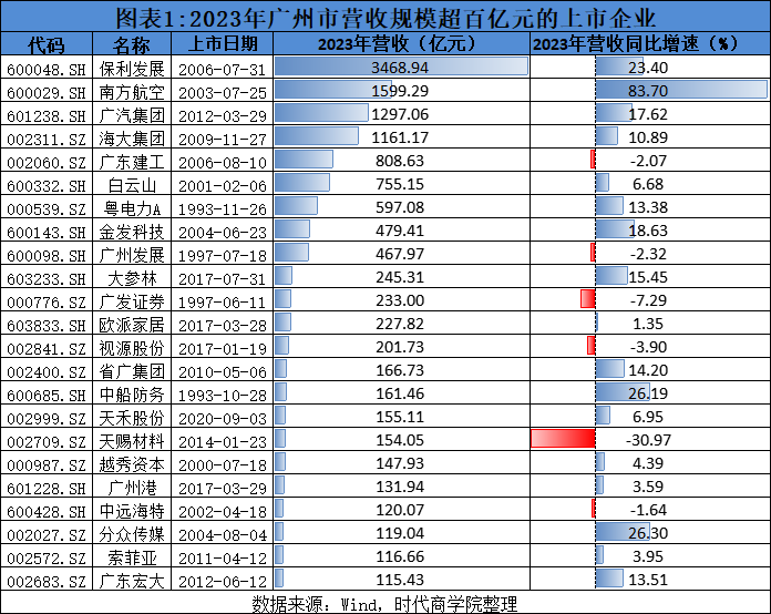 截至2024年4月30日,广州市157家A股上市公司中,除威创股份(002308.SZ)因未按时披露年报被立案调查外,其余156家企业均已披露2023年业绩。Wind数据显示,2023年,广州156家已披露业绩的上市公司,营收共计达到1.56万亿元,相当于当年广州市GDP(3.04万亿元)的51.32%。