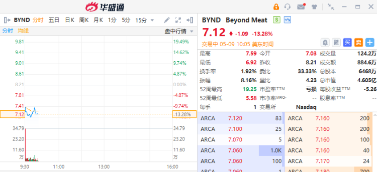 人造肉公司Beyond Meat跌超13%,Q1净营收下降近两成逊预期。