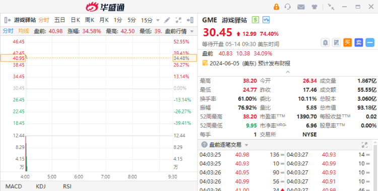 WSB概念股盘前再度强势上涨,截至发稿,AMC院线涨超39%,游戏驿站涨超34%,高斯电子涨超16%,黑莓涨超15%。