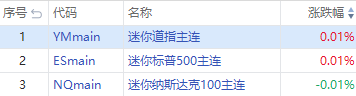 华盛资讯5月14日消息,三大期指盘前走势较平,截至发稿,纳指期货 $NQmain 跌0.01%,标普500指数期货 $ESmain 涨0.01%,道指期货 $YMmain 涨0.01%。