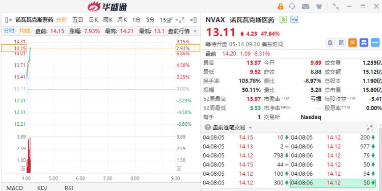 诺瓦瓦克斯医药盘前涨超8%,公司此前宣布与赛诺菲达成许可协议。值得注意的是,该股隔夜收涨逾47%。