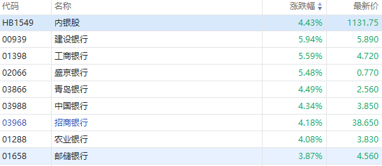 华盛资讯5月16日消息,港股大金融板块午后持续大涨,截至发稿,中国平安涨超6%,建设银行、工商银行、中国人寿涨超5%,招商银行、新华保险涨超4%。