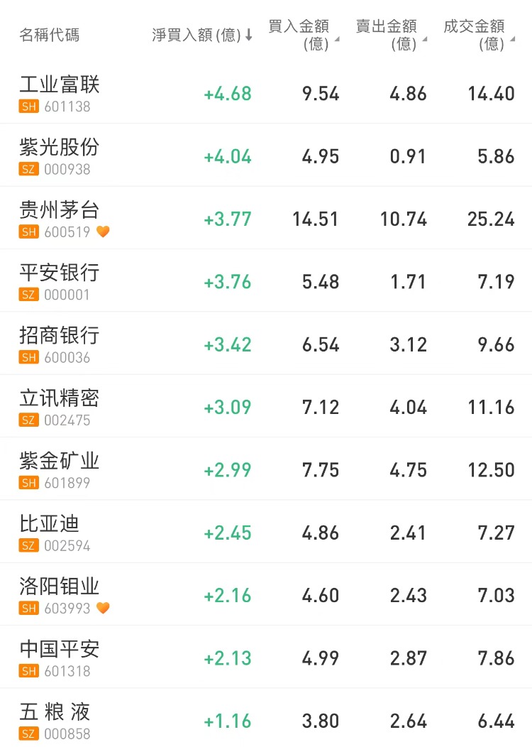 北向资金买入