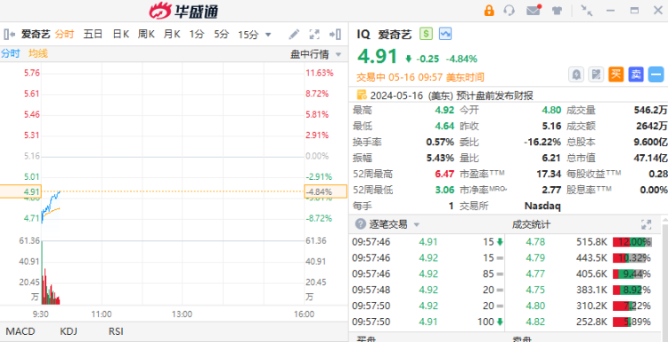 爱奇艺绩后跌近5%,公司Q1总营收为79亿元,同比下滑5%。归属于爱奇艺的净利润为6.553亿元,而2023年同期净利润为6.181亿元。不按美国通用会计准则,归属于爱奇艺的净利润为8.443亿元,而2023年同期净利润为9.395亿元。