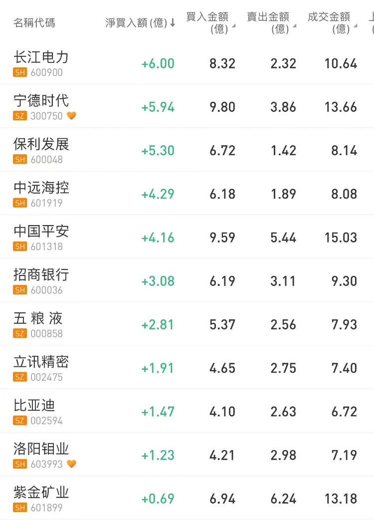北向资金今日大幅净买入139.56亿元。长江电力、宁德时代、保利发展分别获净买入6.00亿元、5.94亿元、5.30亿元。阳光电源净卖出额居首,金额为2.14亿元。