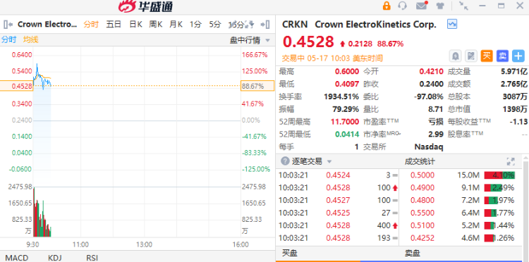 华盛资讯5月17日消息,WSB概念股走势分化,截至发稿,CRKN $CRKN 、GWAV $GWAV 飙涨近90%,Robinhood $HOOD 涨超7%;游戏驿站跌近25%,黑莓跌近3%。