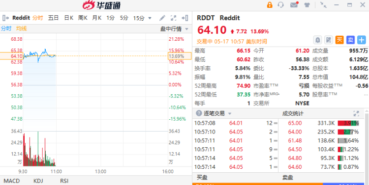 Reddit涨近14%,公司与OpenAI建立了合作伙伴关系,将其内容引入聊天机器人ChatGPT和其他产品,同时也帮助这家社交媒体公司在其论坛中添加新的人工智能功能。