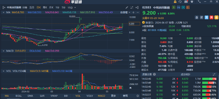 石油股午后走高,截至发稿,中海油田服务(02883)涨6.36%,报9.20港元;中国石油股份(00857)涨3%,报7.80港元;中国海洋石油(00883)涨2.79%,报19.9港元;上海石油化工股份(00338)涨2.56%,报1.2港元。