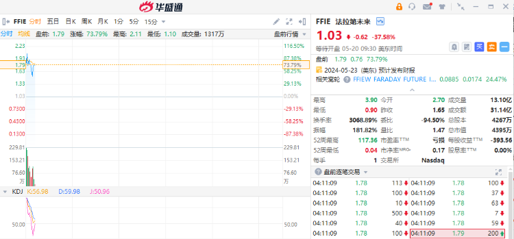 法拉第未来盘前再度走强,截至发稿,现涨超70%,该股上周累计上涨超过2000%,达2134.27%。