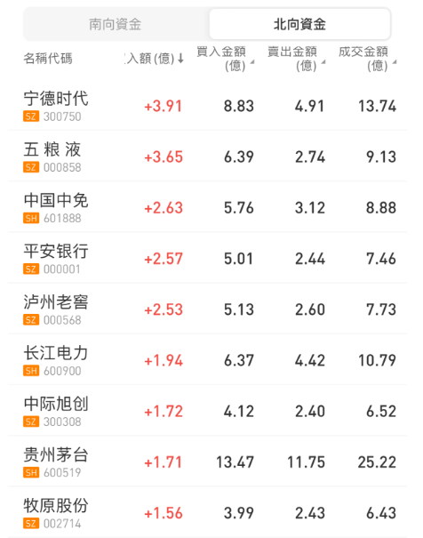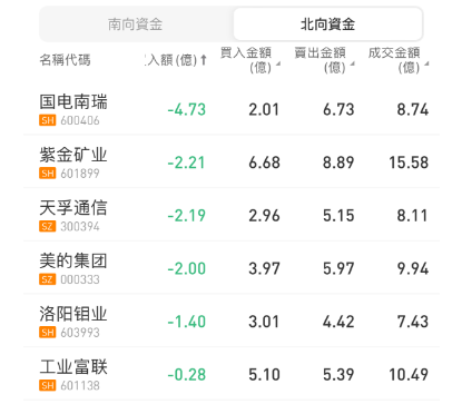 北向资金今日大幅净卖出63.04亿元。宁德时代、五粮液分别获净买入3.91亿元、3.65亿元。国电南瑞净卖出额居首,金额为4.73亿元。