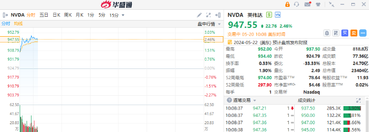 Stifel的分析师鲁本·罗伊上调了其目标价,从910美元提高到1,085美元。这一调整反映了供应链检查显示对英伟达的H100和H200 GPU的“强劲需求”,同时市场对即将推出的Blackwell GPU系列持续保持高度期待。