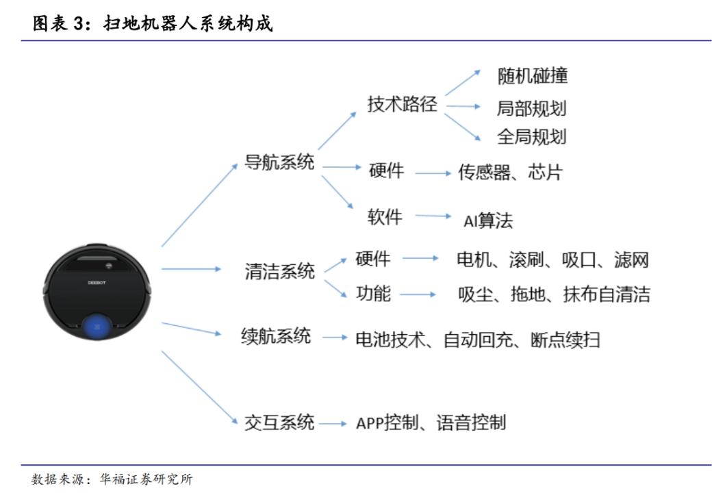 一台智能化的扫地机主要分为四大系统:导航系统、清洁系统、续航系统和交互系统。1996 年,伊莱克斯发布世界上第一台扫地机器人,近30年的时间,很多国内外厂商、巨头以及创业公司无非都是在这四方面努力精进,以让扫地机器人更好地为人类服务。