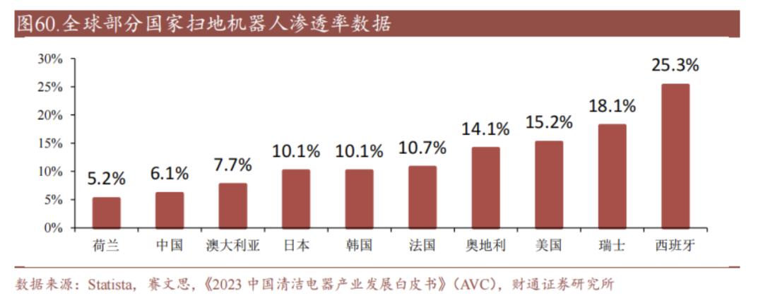 最后,则是对于市场的敏锐捕捉。尽管国内的扫地机市场仍然空间广阔,但从全世界范围看,扫地机的普及率仍然偏低,即使是渗透率最高的西班牙也不到25%,这为国内厂商拓展全球市场提供了想象力。
