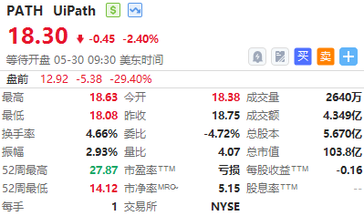 企业自动化软件公司UiPath(PATH.US)美股盘前暴跌超29%,报12.97美元。UiPath第一季度营收为3.351亿美元,分析师预期3.332亿美元;调整后每股收益为0.13美元,分析师预期0.12美元。该公司下调2025财年收入指引,目前预计将在14.05亿至14.1亿美元之间,之前预期为15.55亿至15.6亿美元。此外,UiPath表示,联合创始人兼前首席执行官Daniel Dines将被再次任命为首席执行官,自6月1日起生效。