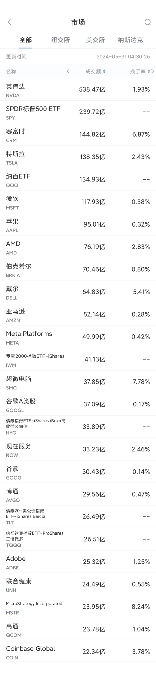周四美股成交额第1名AI芯片龙头股英伟达收跌3.77%,成交538.47亿美元。在此之前,英伟达股价迭创新高,股价史上首次突破1100美元,市值最高达到2.72万亿美元,其CEO黄仁勋的个人财富也超过1000亿美元。
