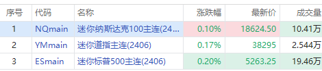 周五盘前,美国4月核心PCE通胀数据超预期降温,三大期指短线拉升转涨,截至发稿,纳指期货 $NQmain 涨0.10%,标普500指数期货 $ESmain 涨0.20%,道指期货 $YMmain 涨0.17%。