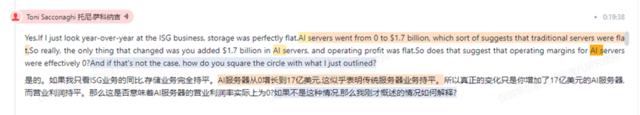 意味着整个ISG业务在本季度真正的变化是AI服务器新增了17亿美金。