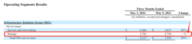 然而实际经营数据显示存储业务收入没有变化,远低于市场会前预期的18%的增长。