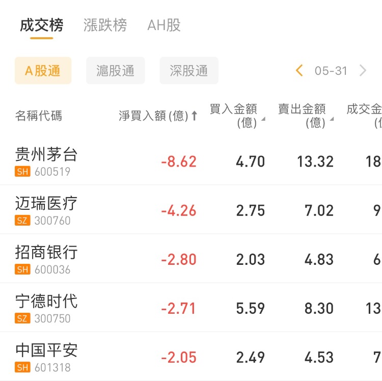 北向资金今日大幅净卖出77.98亿元。贵州茅台、迈瑞医疗、招商银行分别获净卖出8.62亿元、4.26亿元、2.8亿元。紫金矿业净买入额居首,金额为2.61亿元。