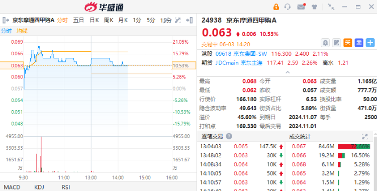 如投资者看好京东,可注意京东购(24938) $24938.HK ,行使价166.18港元,实际槓杆6.8倍,2024年11月7日到期。如计划趁高造淡可留意京东沽(24939) $24939.HK ,行使价108.08港元,实际槓杆4.1倍,2024年11月7日到期。