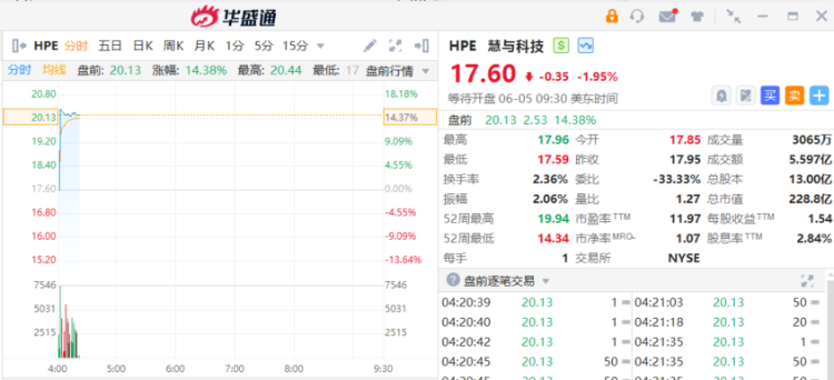 慧与科技盘前大涨超14%,服务器业务强劲,2024财年业绩指引超预期。