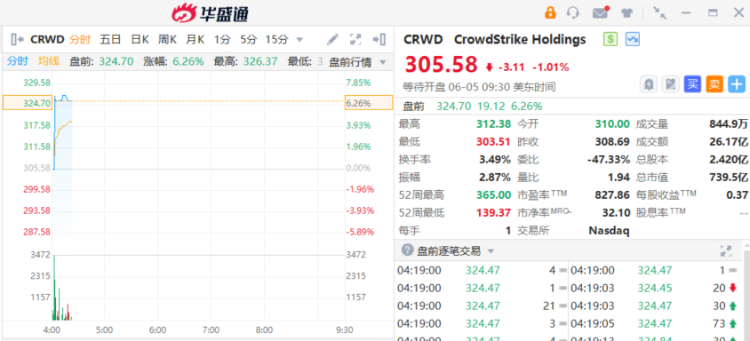 CrowdStrike盘前涨超6%,一季度营收超预期,上调全年营收指引。