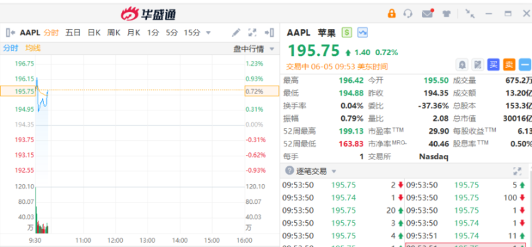 苹果涨近1%,总市值重回3万亿美元,苹果全球开发者大会将于下周开幕。