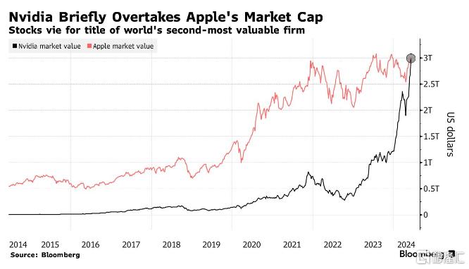 英伟达市值超越标志着硅谷已经发生了转变,未来AI、计算将成为全球科技最重要的领域。要知道,自2007年推出iPhone以来,苹果就一直占据主导地位。