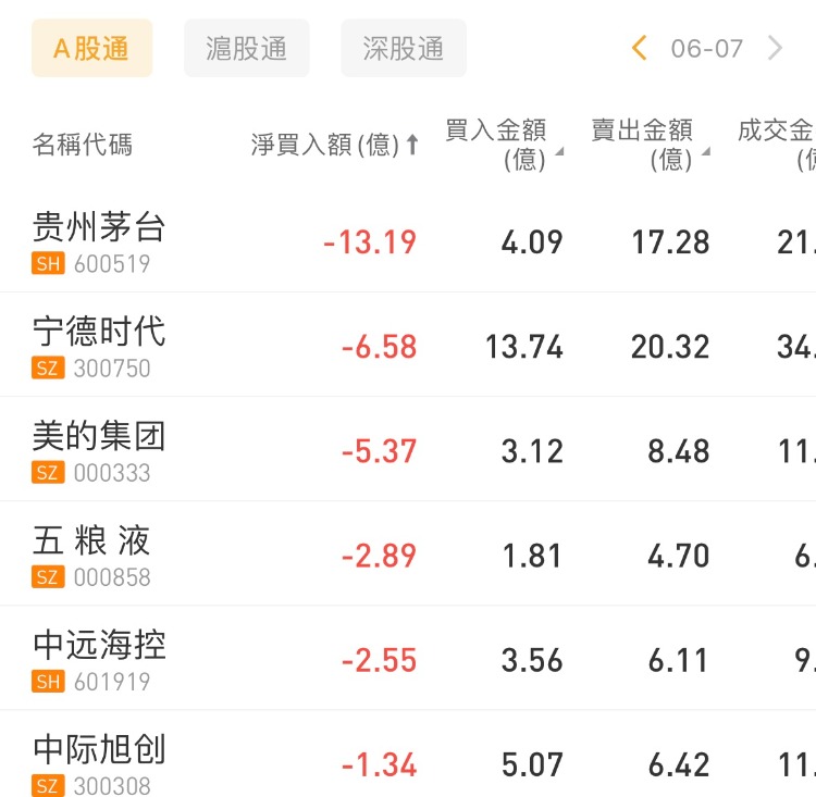 北向资金今日净卖出7.05亿元。贵州茅台、宁德时代、美的集团分别获净卖出13.19亿元、6.58亿元、5.37亿元。北方华创净买入额居首,金额为3.27亿元。