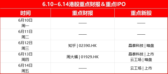 周一(6月10日):端午节港股休市一日;