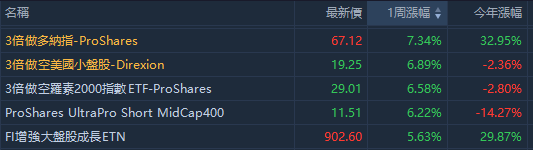 ETF方面,3做多纳指ETF $TQQQ 本周飙升7.34%。