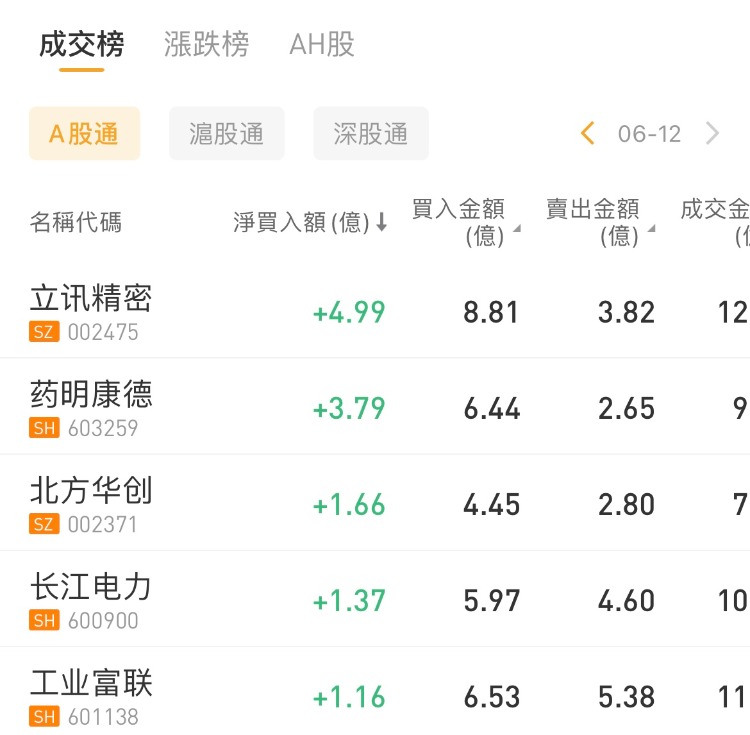 北向资金买入立讯精密、净卖出贵州茅台