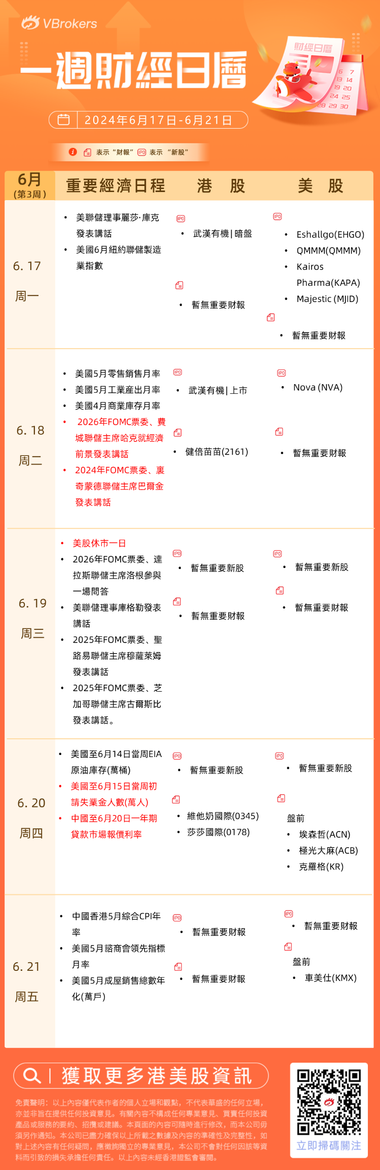 2、美股方面,下周预计即将上市5只新股:Eshallgo $EHGO 、QMMM $QMMM 、Kairos Pharma $KAPA 、Majestic $MJID 、Nova $NVA 。