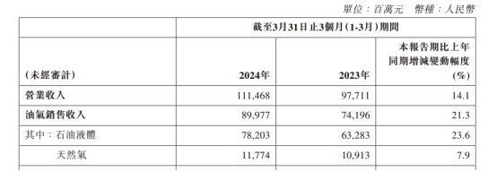 中国海洋石油的一季报公布时间为4月25日,财报发布的第二天,股价大幅跳涨开盘,收盘时仍有3.58%的涨幅,财报激发的乐观情绪具有持续性。具体来看,一季度,中国海洋石油实现营收总额1114.68亿元,相比2023年的977.11亿元大增14.1%;其中还石油液体贡献的营收总额为782.03亿元,占比70%,同比大增23.6%;天然气贡献营收117.74亿元,占比11%,同比增长7.9%。中国海洋石油股价能够在本周创出上市以来新高,核心影响因素就是财报激发的乐观情绪。
