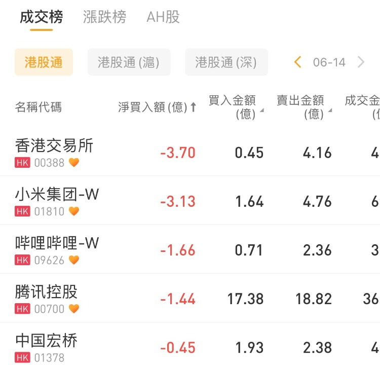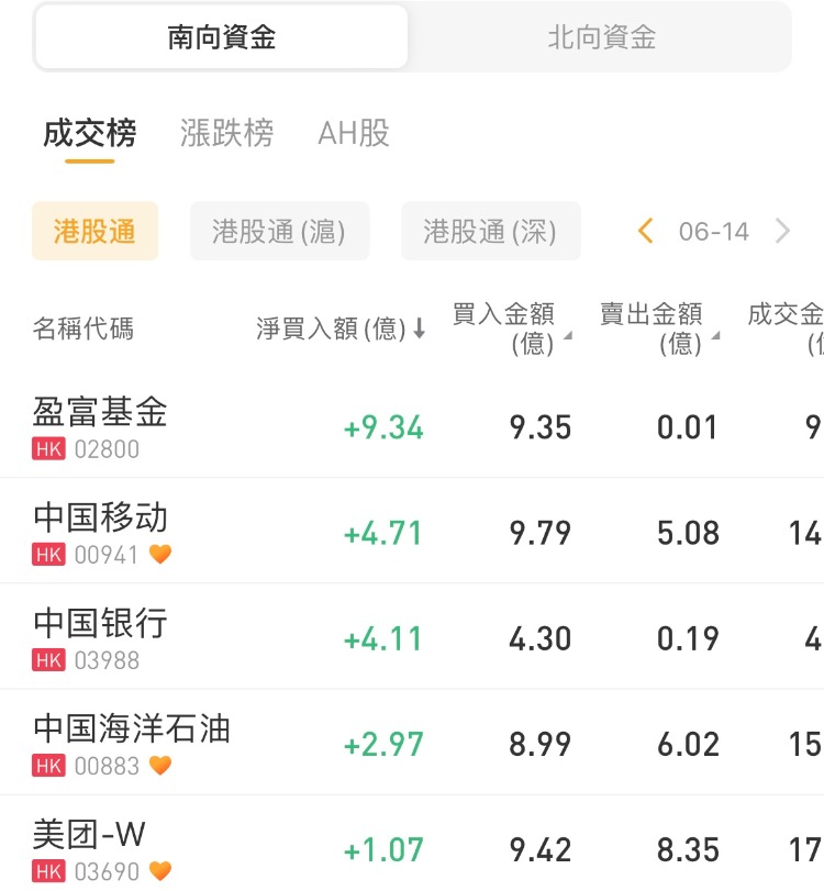 其中,南向资金净买入盈富基金9.31亿港元、中国移动4.71亿港元、中国银行4.11亿港元;净卖出香港交易所3.7亿港元,沽出小米集团-W3.13亿港元。