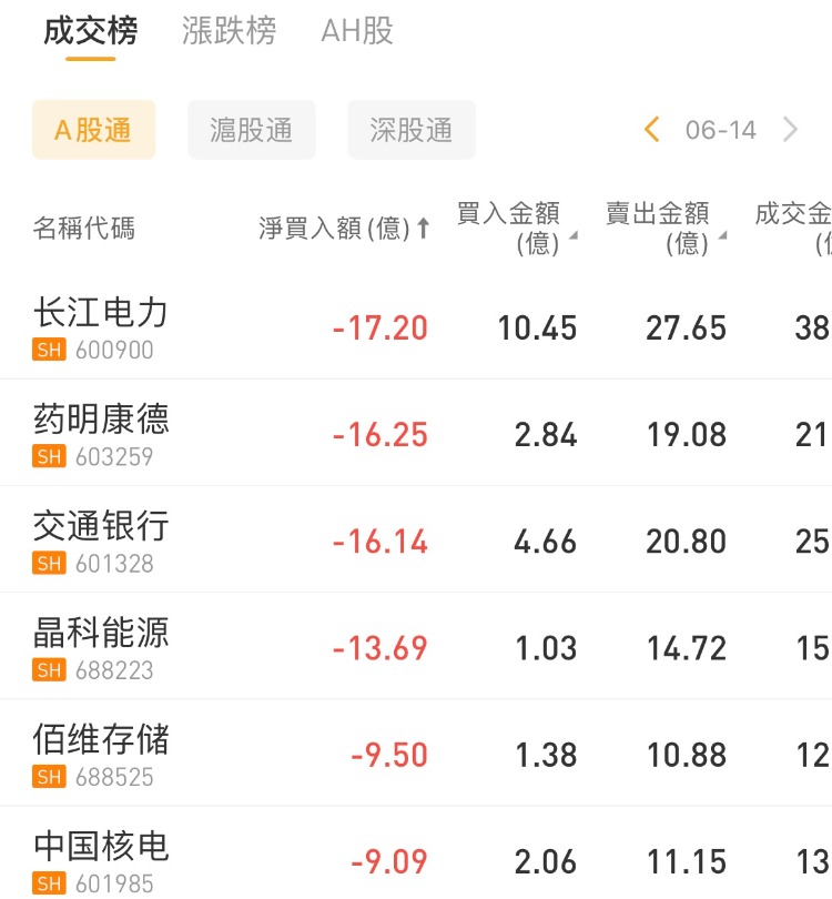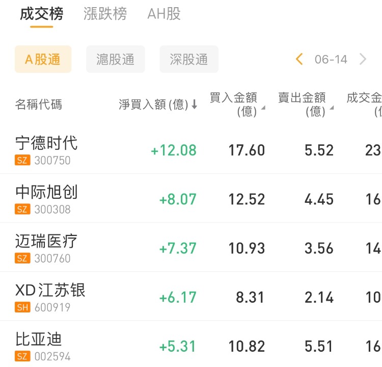 北向资金今日净卖出47.35亿元。长江电力、药明康德、交通银行分别遭净卖出17.2亿元、16.25亿元、16.14亿元。宁德时代净买入额居首,金额为12.08亿元。