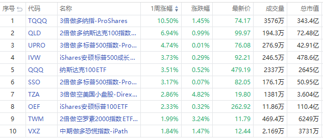 1、本周美股ETF涨幅榜