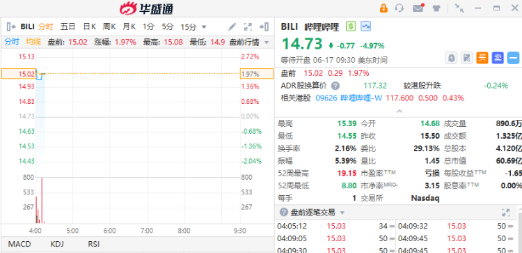 热门中概股盘前涨跌不一,蔚来盘前涨超2%,哔哩哔哩盘前涨近2%,阿里巴巴涨超1%,百度、京东、拼多多等跟涨;贝壳盘前跌超1%。