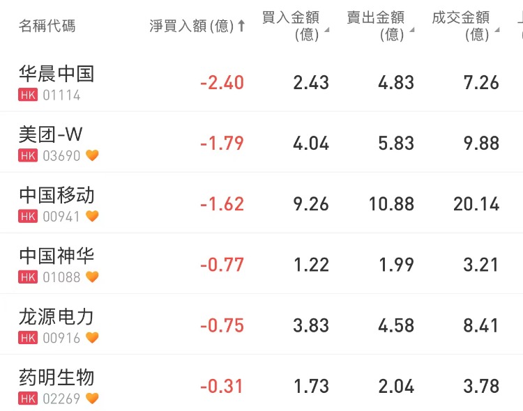 南向资金净买入腾讯4.4亿港元,净卖出华晨中国