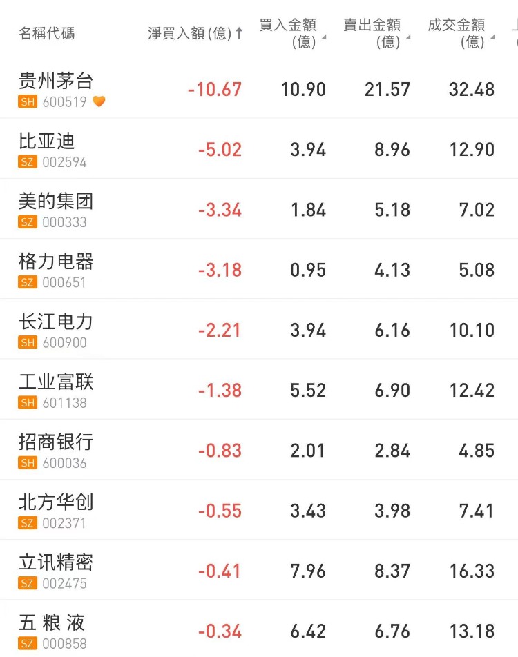 北向资金大肆减仓茅台10.67亿元,逆势加仓赛力斯5.16亿元